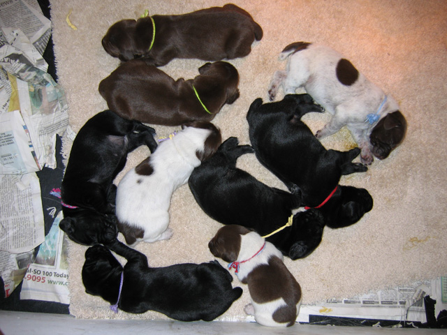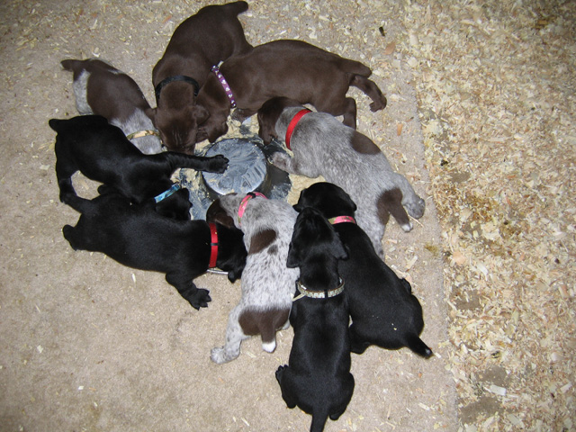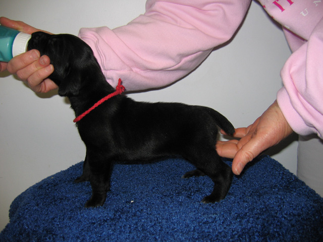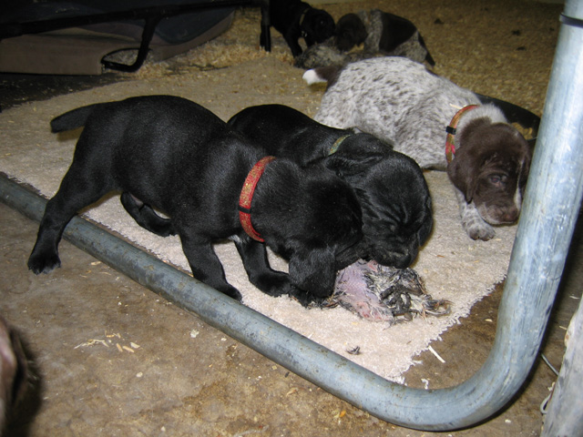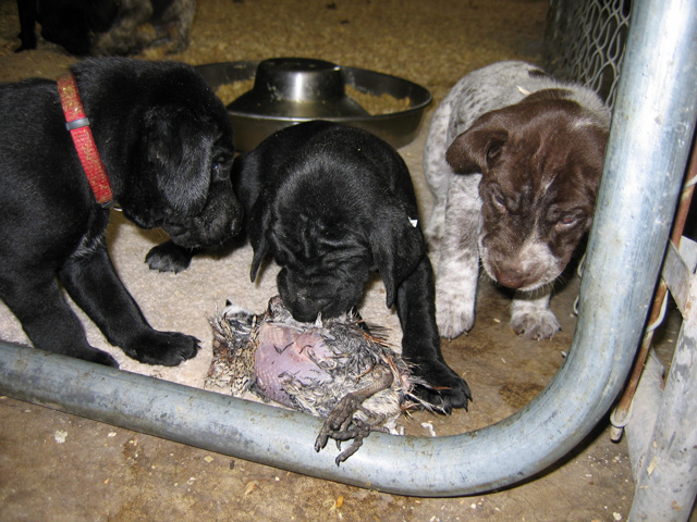 Tux tested very well at seven weeks old on June 19, 2009. He showed ample desire and natural ability, yet still had a very laid-back attitude that we liked a lot. This one shows some extreme promise!